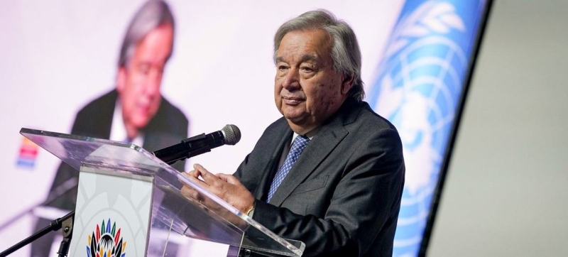 Генеральный секретарь ООН Антониу Гутерриш обращается к СМИ на саммите G20 в Южной Африке. Настало время для лидерства и дальновидности, заявил Гутерриш на конференции G20 в Южной Африке по делам ООН
