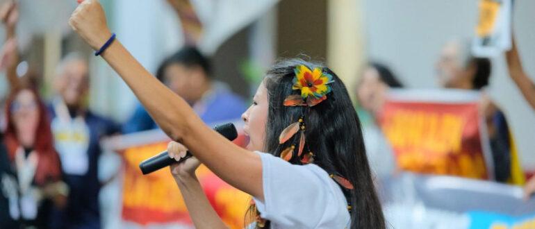 Демонстранты протестуют во время акции “Конец мирового рынка” на КС-30 в Белене, Бразилия. От сборщиков мусора до залов судебных заседаний: женщины требуют уделения гендерного внимания на КС-30 Фелипе…