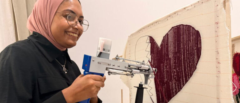 Женщина использует тафтинговую машину для изготовления ковра в комплексе «Аль-Тумама». В тихом населенном пункте на окраине Дохи раненые и осиротевшие жители Газы учатся исцеляться От Вибху Мишры и…