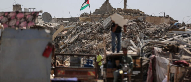 Палестинский флаг развевается над руинами Хан-Юниса на юге сектора Газа. Необходимы «решительные действия», чтобы положить конец израильско-палестинскому тупику в области прав человека. Председатель Генеральной Ассамблеи ООН призвал во…